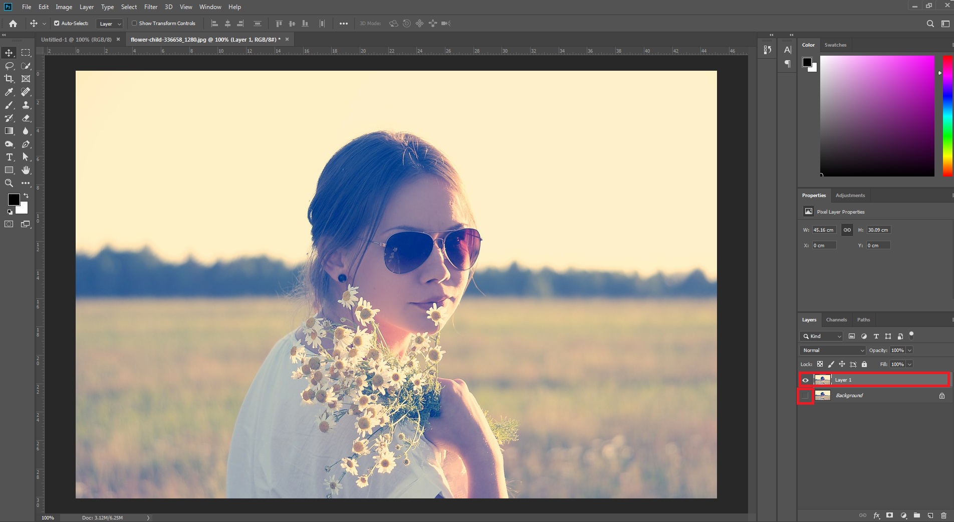 가장먼저 단축키Ctrl+J를 눌러 레이어를 복사해준다음, 원본 이미지의 눈표시모양을 체크하여 줍니다. 원본이미지에 작업하면 수정이 어렵기 때문에 레이어를 복사하여 작업하는것을 습관화 시켜줍시다.